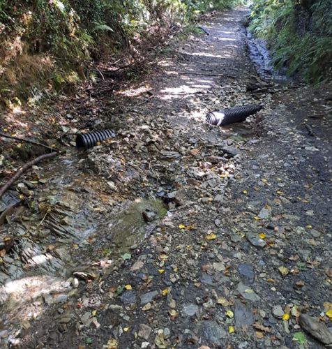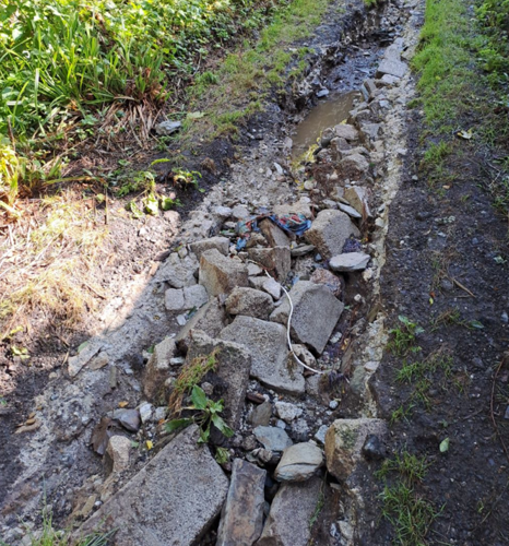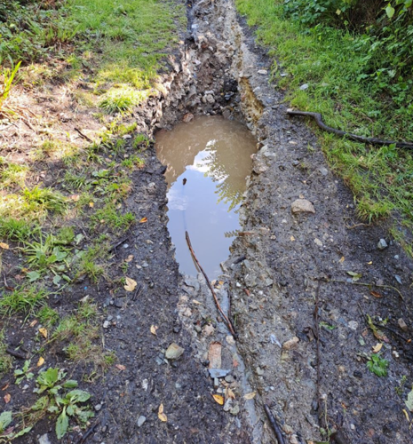 Following a period of heavy rainfall, the Countryside Team received reports of significant damage to the path. Large sections of the surface had been washed away, leaving deep holes, jagged rocks, uneven terrain and exposed pipes that posed a serious safety risk to users. The path was closed immediately.